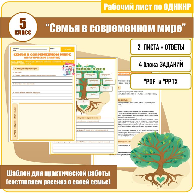 Практическое занятие "Семья в современном мире" ОДНКНР 5 класс.