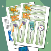 В течение четырех лет, под чутким руководством педагога, ребята активно взаимодействуют с этим символом трека «Орлёнок-Эколог», постепенно обогащая свой «рюкзачок» новыми знаниями о социальных связях. Дети развивают навыки обобщения и анализа, а также учатся систематизировать полученную информацию. В отделения рюкзачка можно положить описание экологического проекта класса, маршрутный лист похода с фотографиями, правила поведения на природе, пословицы о природе и т.д.