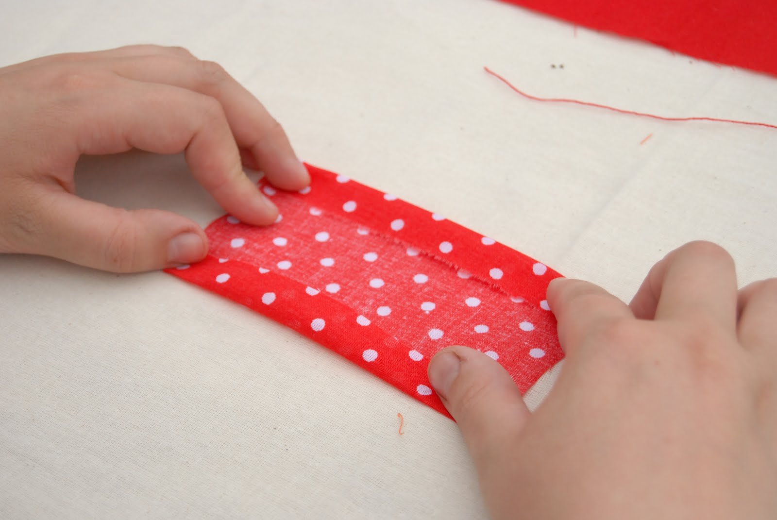 прост. Берем меньший кусочек ткани и складываем длинными сторонами вовнутрь
