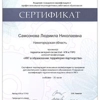 Гранд Губернатора приоритетного национального проекта "Образование", 2006 и 2010 года. Финалист Российско-американской программы обмена "Учителя-учителям", LTMS-2008. Стажировка в США, штат Монтана, октябрь 2008. Мастер - тьютор программы "Учимся с Intel".